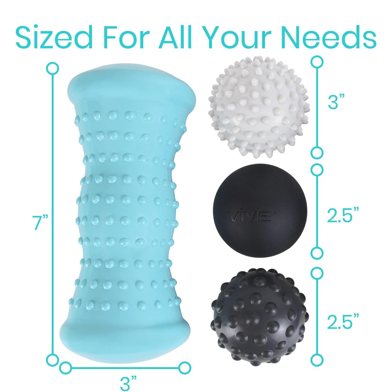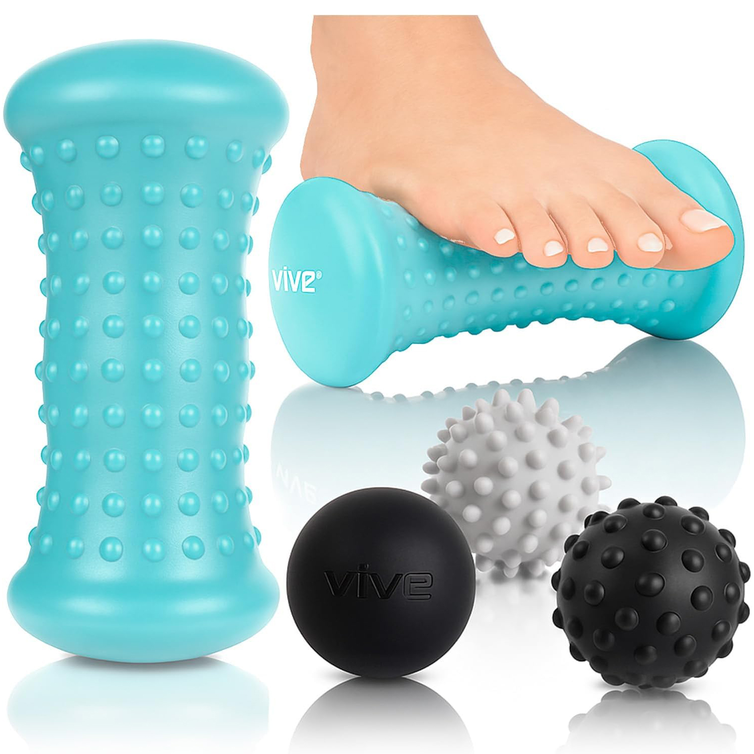 Vive Massage Ball Set (4 Piece) – Plantar Fasciitis Relief Foot Pain Hot Cold Therapy – Heel Spur, Sore Muscle, Trigger Point, Back, Arm, Neck, Shoulder, Leg Circulation Roller